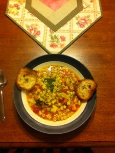 Today I decided to try another Pinterest recipe. I wanted something hearty and wintery. This soup was just the ticket – Mike and I both went back for seconds! The garlic bruschetta was super easy and a really nice addition.