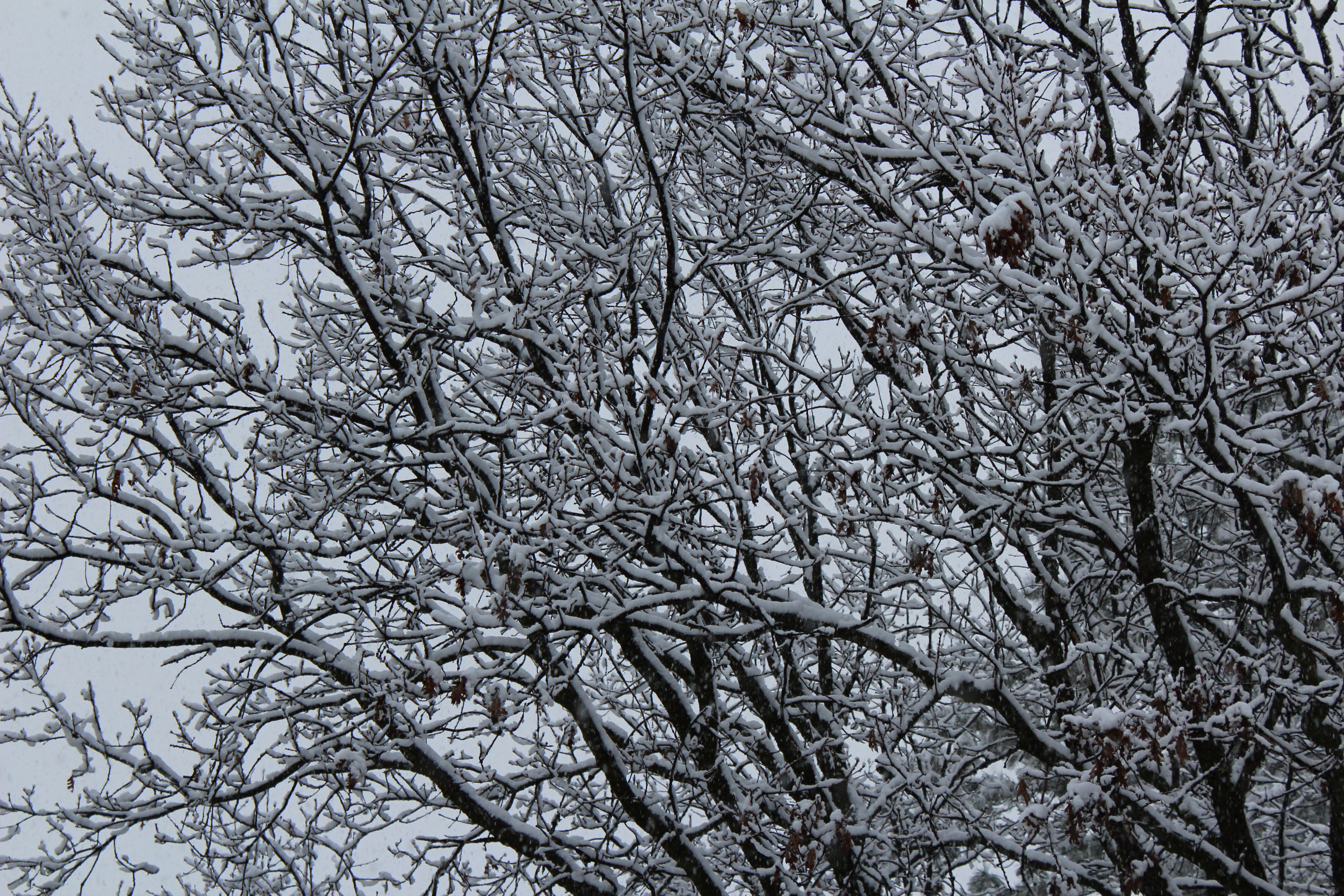 I’m still learning to photograph – lighting in the snow is still a little tricky for me. I love how the trees look when they get snow on them – especially the huge oak trees all over our property: