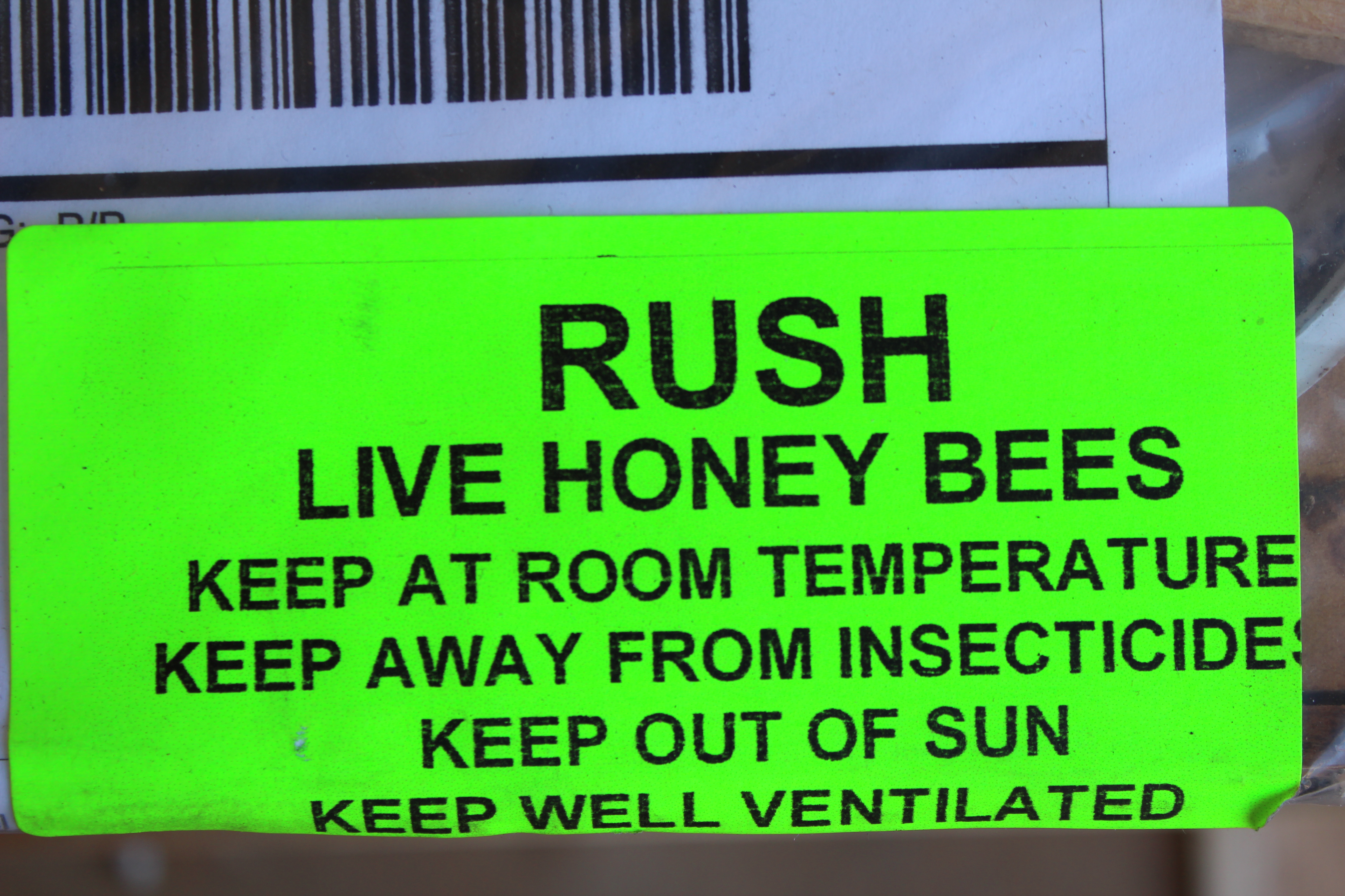 Yeah, I’m 99% sure that my UPS guy hates me. I checked the online tracking and these were loaded into his truck at 7am this morning… and delivered at 3:30pm this afternoon. I’m not gonna lie, the buzz of thousands of bees is a little unnerving… driving around all day with them in your car must have sucked. I haven’t been able to find the queen yet – she’s somewhere under there in her own special cage.