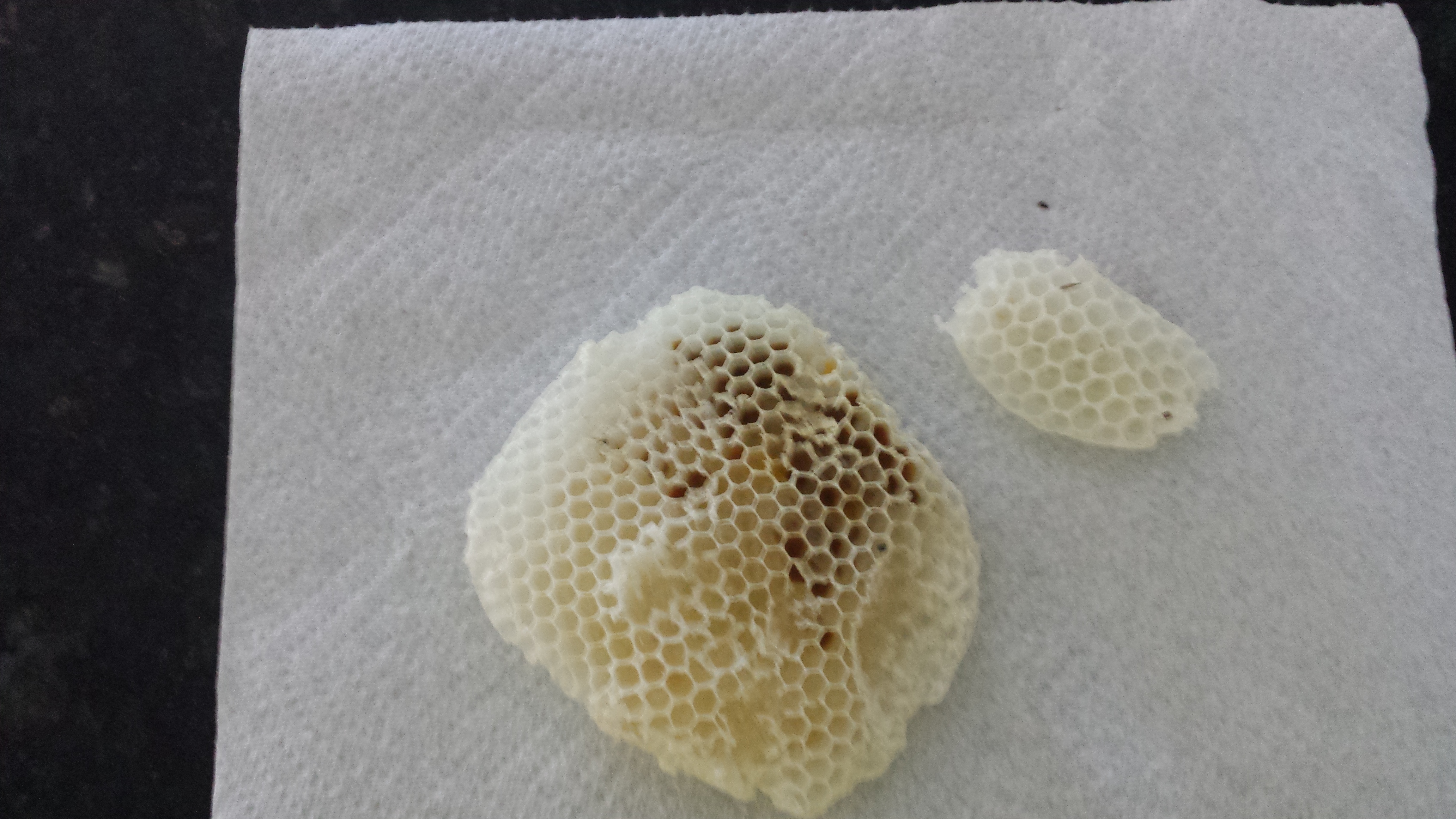 The frames have an artificial honeycomb built-in to encourage the bees to build theirs around it (and to keep them from building between the frames, making it hard to pull them out and access the honey).