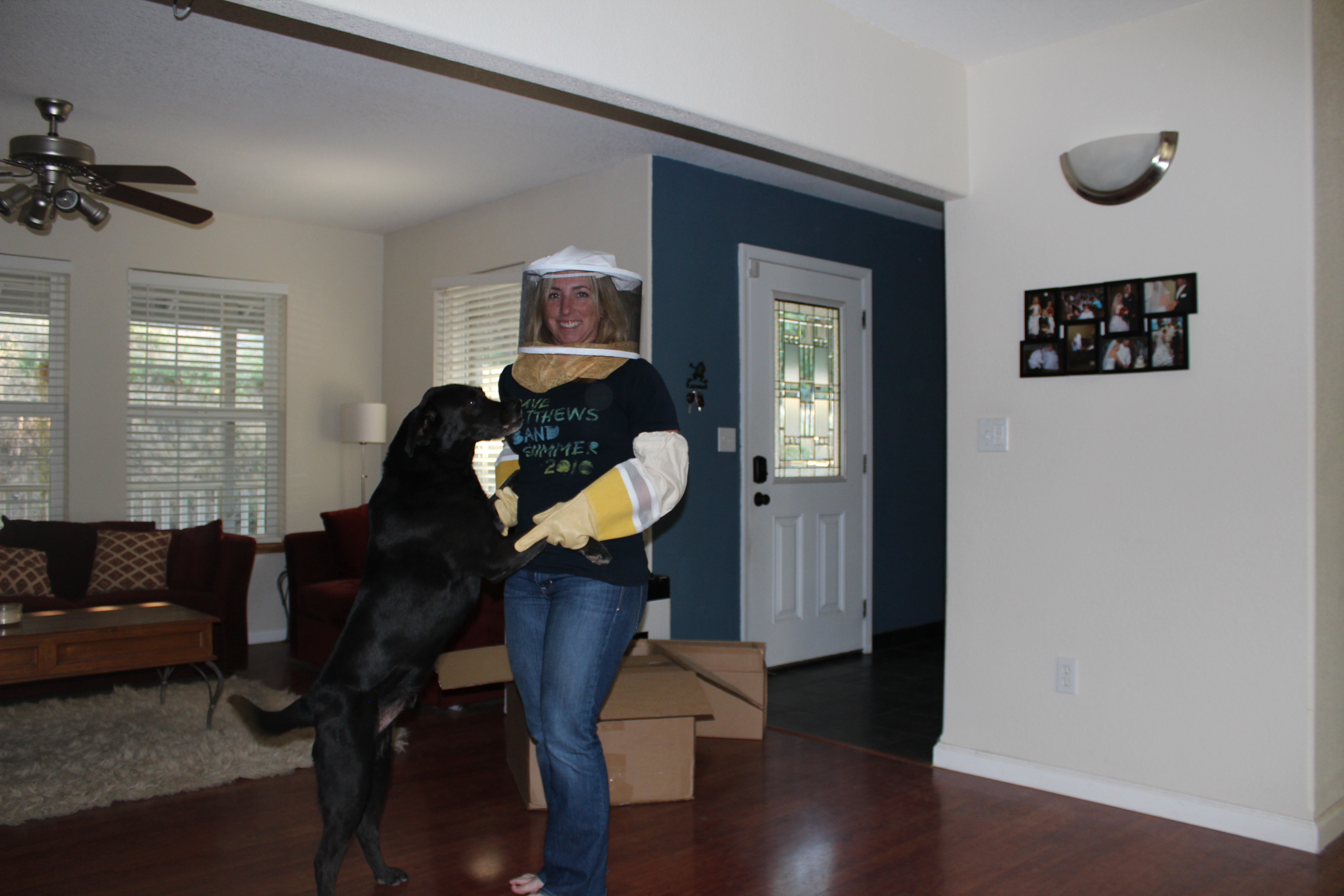 This was seriously quite the process. I was a sweaty mess by the time I was done, but I had no stings. It was such a cool experience! I walked down after dinner and all of the bees that you see on the ground in the above picture were gone… I’m assuming into the hive since they had been moving in that direction. I could see some flying around, but hopefully they’re all getting settled in for the night. This was so much fun!