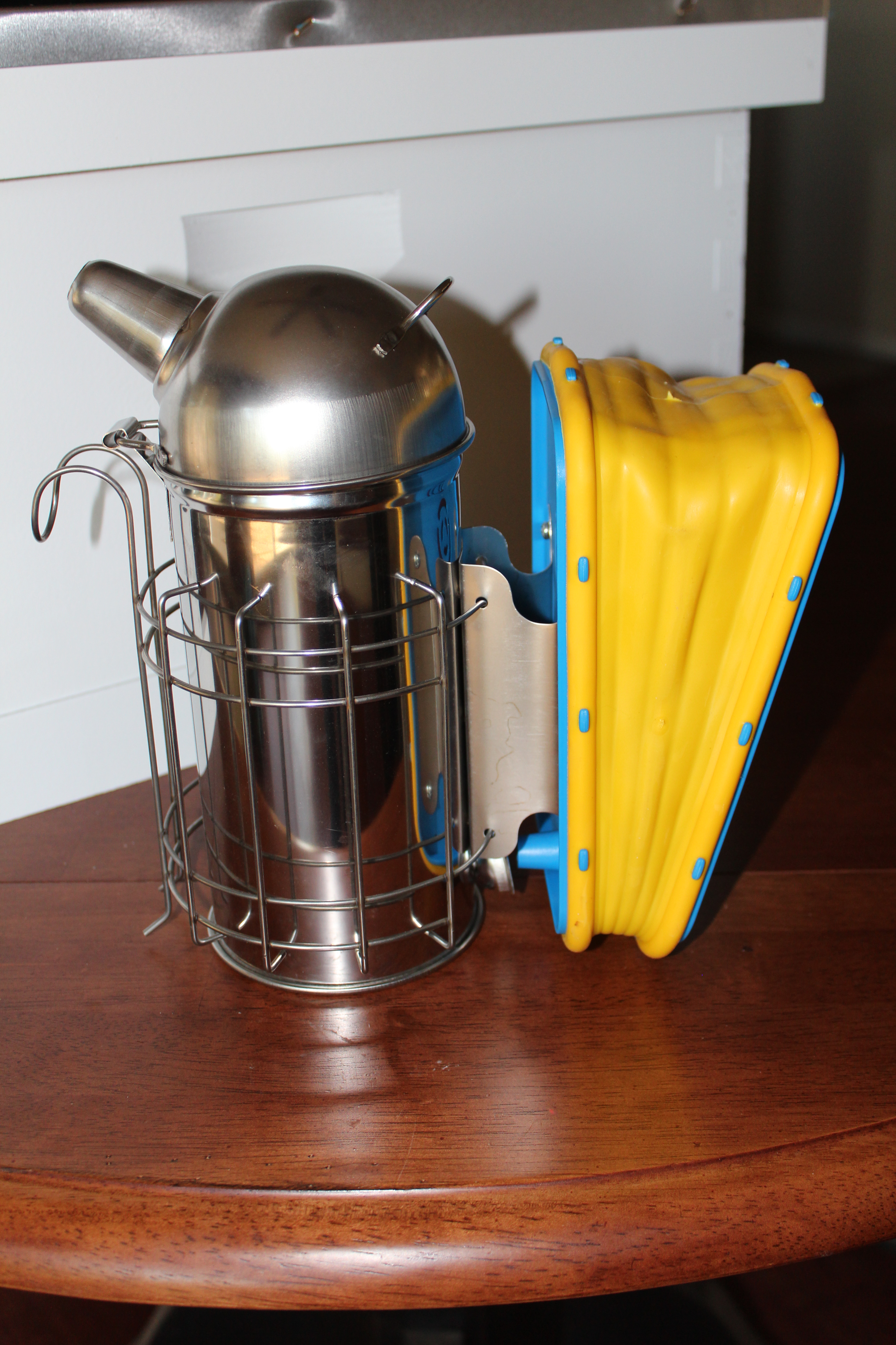 Finally, there’s a very important piece of gear – the smoker. This basically makes the bees sleepy/lazy/less prone to sting when you want to either check the hive or harvest the honey.