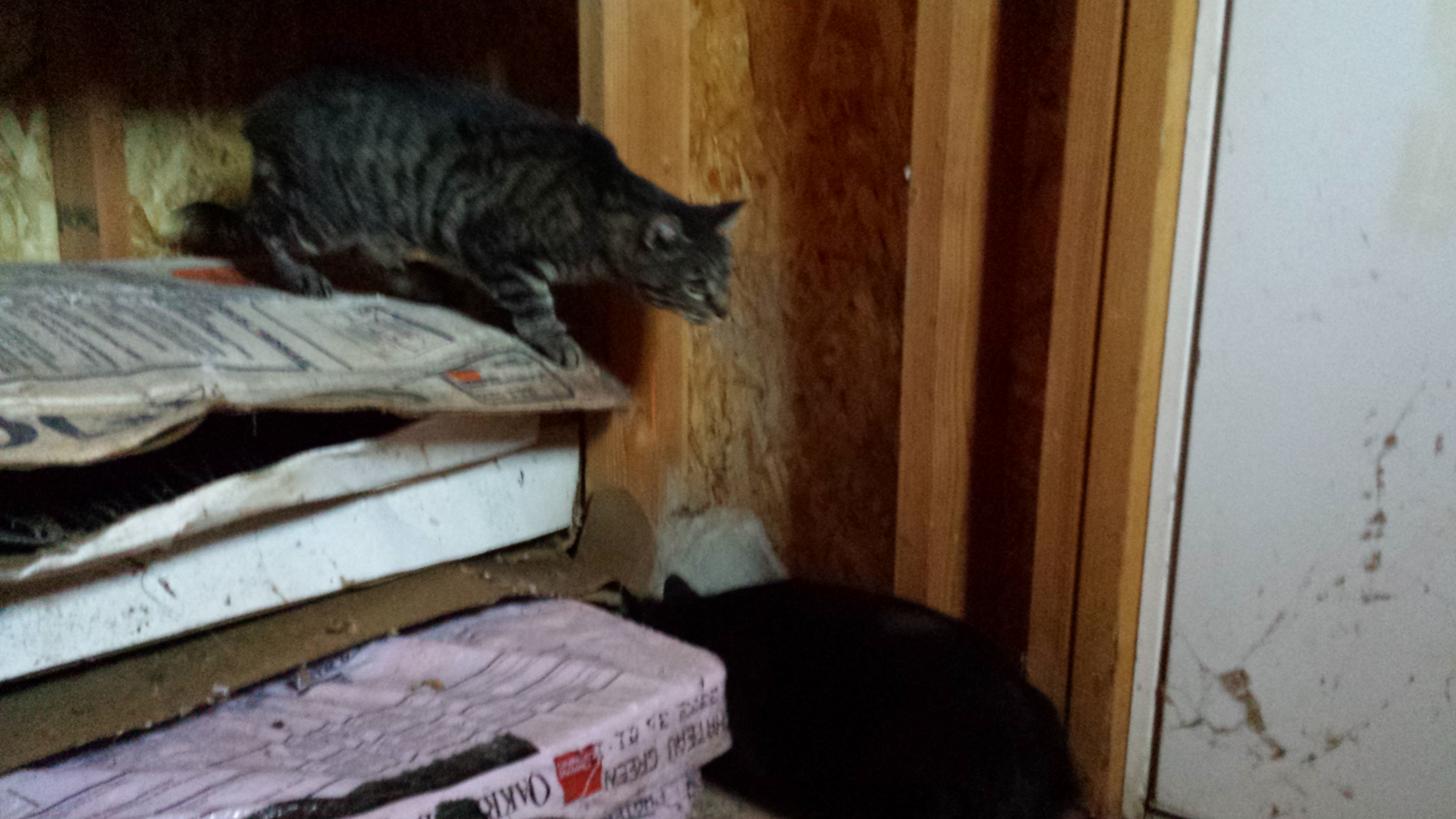 To be honest, I’m not exactly sure what to do about this. I can’t not put food out, knowing the cats are relying on it, but I definitely don’t want to feed Purina’s finest cat food to a skunk. Nor do I want to encourage one to hang around. I put some more food (and the camera) back out tonight… fingers crossed we just get cats this time!